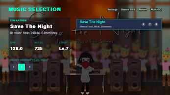 This project uses Pygame to parse BMS files and provides an environment where you can enjoy any chart format **remapped into 4 lanes** along with key sounds.